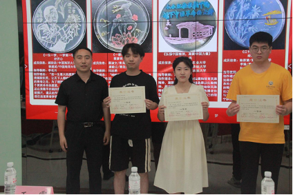 董朝老师、王晓菲老师、徐文锋老师、孟凡清老师和学生会活动负责人李洳为“优秀奖”获奖队伍颁奖